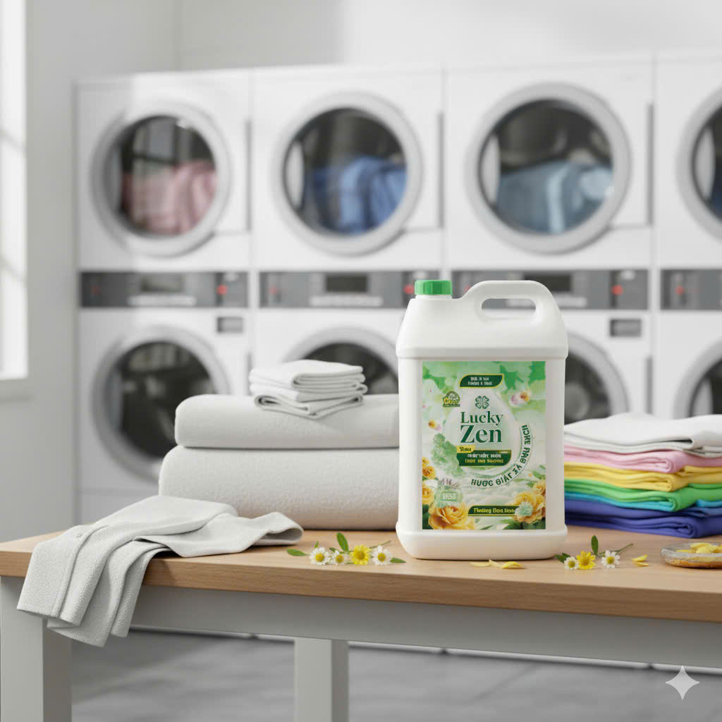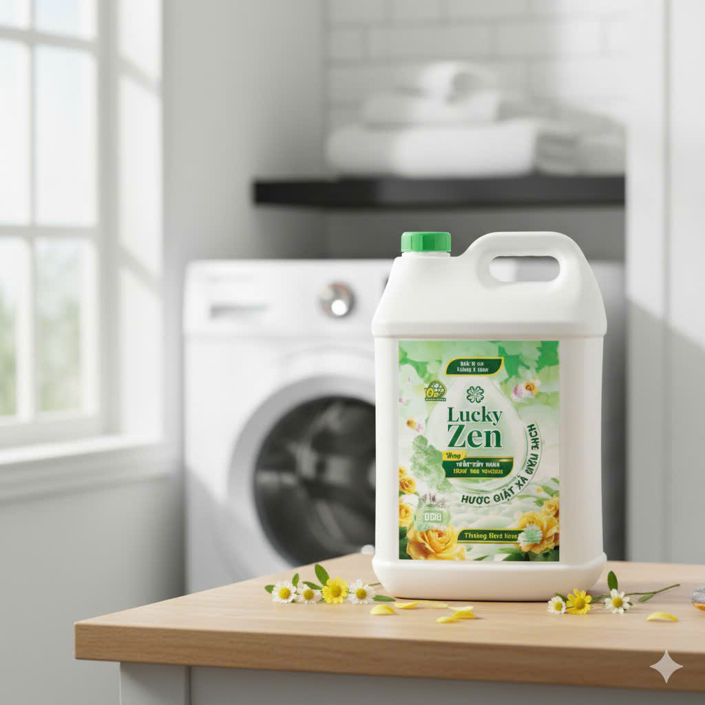 " Thương hiệu Lucky Zen từ lâu đã quá quen thuộc với các chị em nội trợ. Nước giặt tinh dầu thơm thế hệ mới có thể đánh bay những vết bẩn cứng đầu nhất như dầu nhớt một cách nhanh chóng và hiệu quả. Đồng thời, còn xả sạch bọt xà phòng nhanh chóng, mang lại hương thơm bền lâu trên áo quần.! "
